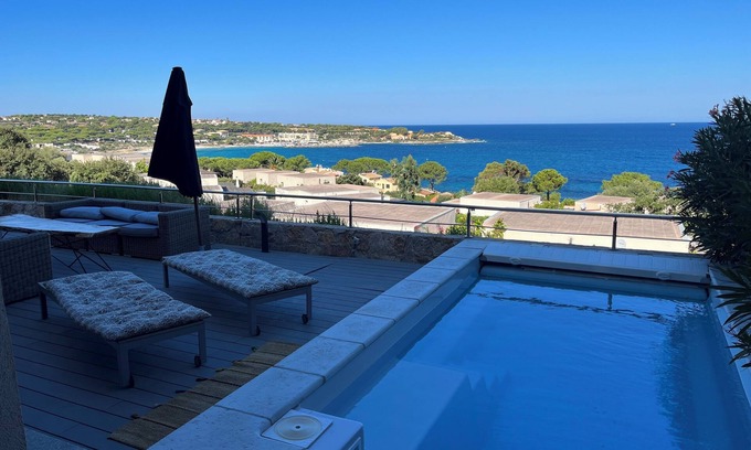 Villa apartment Terrace 200 m Panoramic sea view swimming pool beach is located in Marine de Saint Ambroggio. Villa apartment Terrace 200 m Panoramic sea view swimming pool beach provides accommodation, featuring Air Conditioner, Pool, View, among other amenities. This Villa features Air Conditioner, Pool, View, to make your stay a comfortable one.