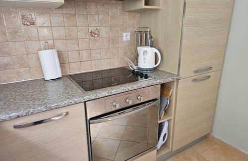 Villa Armonia B features a fully equipped kitchen, a cozy living room with a sofa bed, two bedrooms—one with a double bed and one with a single—and a bathroom with a walk-in shower. All rooms are air-conditioned and bright, with views of the surrounding greenery. Ideal for families or couples, the space offers comfort, functionality, and a relaxing atmosphere for a peaceful holiday.