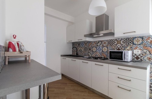 The villa "Asia Frontemare" in Santa Maria del Focallo is the perfect accommodation for a stress-free holiday with your loved ones. The 100 m² property consists of a living room, a fully-equipped kitchen, 2 bedrooms and 2 bathrooms and can therefore accommodate 5 people. Additional amenities include high-speed Wi-Fi (suitable for video calls) with a dedicated workspace for home office, air conditioning, heating, a washing machine as well as a TV.