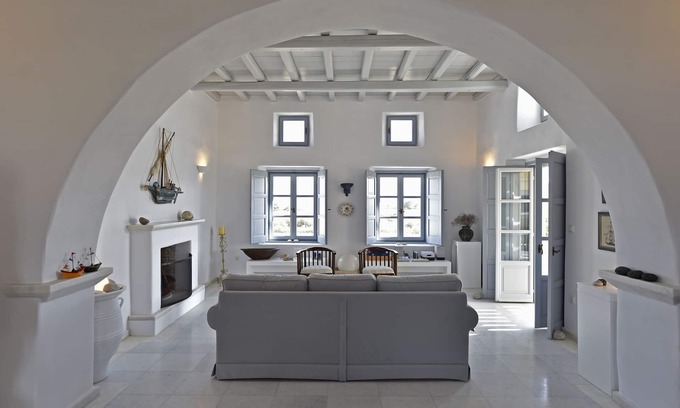 Best-rates for the Paros villa starts from $226 per night with includes Oceanfront, Sports/Activities, Bedding/Linens, Entertainment, Barbecue/Outdoor Cooking, TV, Wellness Facilities, Fireplace/Heating, Child Friendly, Laundry, Air Conditioner, Ocean View, Internet, Kitchen, View, Balcony/Terrace, Security/Safety, Parking with all other amenities. Perfect for Weddings is committed to ensuring every guest experiences a comfortable and extraordinary stay, whether planning a romantic getaway, a honeymoon, a pet-friendly stay, or celebrating with the entire wedding party.