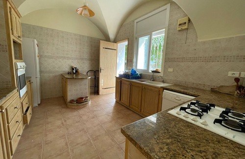 Nestled in Hammamet, this 4-bedroom, 1.5-bathroom villa brings it all within your reach. Fans of nature and the outdoors will love being 9 minutes by car from Hammamet Beach and 7 minutes from Yasmine Beach. Your feet will make short work of the 11-minute walk to Carthage Land or the 11-minute walk to Médina Convention Center.