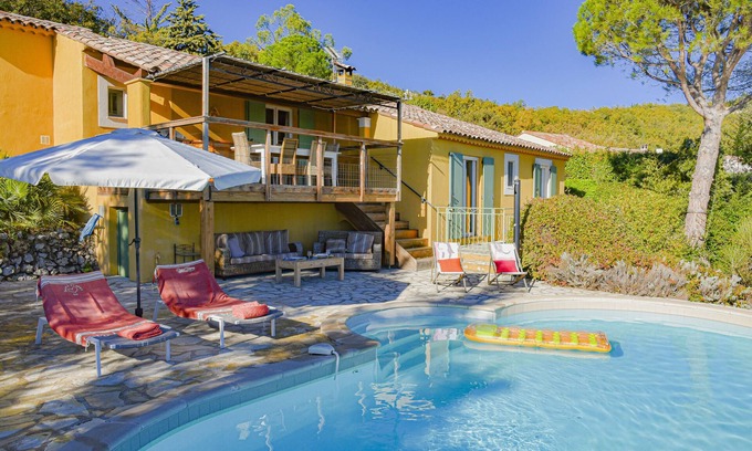 Villa Avec Piscine au Calme Bénéficiant D'une vue Panoramique mer et Montagne is located in Mons. Villa Avec Piscine au Calme Bénéficiant D'une vue Panoramique mer et Montagne provides accommodation, featuring Designated Smoking Area, View, Private Pool, among other amenities. This House features Designated Smoking Area, View, Private Pool, to make your stay a comfortable one.