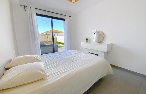 This property offers access to a terrace and free private parking. The villa also offers an outdoor swimming pool and a garden for guests to relax in. With free Wifi, this 3-bedroom villa features a flat-screen TV, a washing machine, and a fully equipped kitchen with an oven and microwave. Guests can take in the views of the pool from the balcony, which also has outdoor furniture. For added privacy, the accommodation features a private entrance. Beziers Cap d'Agde Airport is 14 miles from the property.