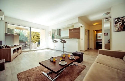 - Antibes: Superb air-conditioned T2 200m from the beaches Room with Terrace, closed park
