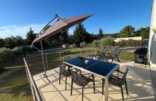 Villa Bahia - bas de villa en pleine nature! offers accommodations in Saint-Mitre-les-Remparts, 28 miles from Les Terrasses du Port Shopping Center and 28 miles from Joliette Metro Station. This property offers access to a balcony, free private parking, and free Wifi. The accommodation features airport transfers, while a bicycle rental service is also available. The apartment provides guests with a terrace, garden views, a seating area, satellite flat-screen TV, a fully equipped kitchen with an oven and a microwave, and a private bathroom with walk-in shower and a hair dryer. A toaster, a fridge, and stovetop are also available, as well as a coffee machine. At the apartment complex, each unit has bed linen and towels. Guests can swim in the pool with a view, go walking tours, relax in the garden, and use the barbecue facilities. Museum of European and Mediterranean Civilisations is 29 miles from Villa Bahia - bas de villa en pleine nature!, while Vieux Port Metro Station is 29 miles from the property. Marseille Provence Airport is 19 miles away.