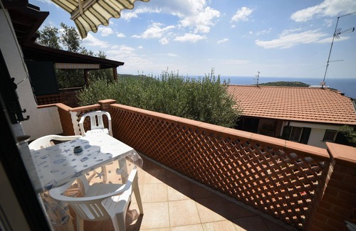 Villa Lucia, a beautiful residence in Marina di Camerota equipped with kitchen, double bedroom, hallway, bathroom and veranda.