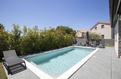 Villa Barbara offers accommodations in Juršići, 12 miles from Pula Arena and 20 miles from Cathedral St. Eufemia Rovinj. With garden views, this accommodation offers a patio and a swimming pool. There's a children's playground and guests have access to free Wifi, free private parking, and an electric vehicle charging station. The air-conditioned villa consists of 3 bedrooms, a living room, a fully equipped kitchen with a dishwasher and a coffee machine, and 3 bathrooms with a walk-in shower and a hair dryer. Guests can take in the views of the pool from the terrace, which also has outdoor furniture. For added privacy, the accommodation features a private entrance. Guests can make the most of the warm weather with the property's barbecue facilities. Guests at the villa can enjoy cycling and hiking nearby, or make the most of the garden. Morosini-Grimani Castle is 5.6 miles from Villa Barbara, while Brijuni National Park is 9.2 miles away. Pula Airport is 13 miles from the property.