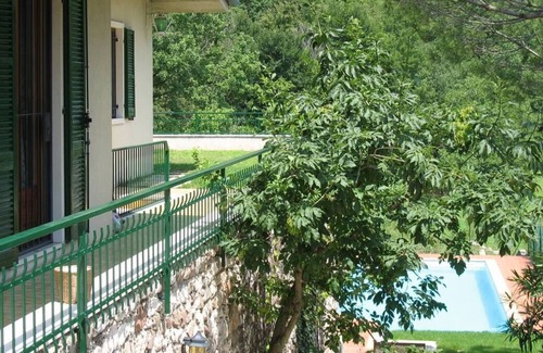 The last 200m of the access road is gravel and the driveway has a steep incline. The villa's private swimming pool is on a lower level overlooking fields and woodland. The only possible distraction is an occasional horseman along the mountain trail or hiker. Torri del Benaco, a picturesque lakeside resort town, is five minutes drive away.