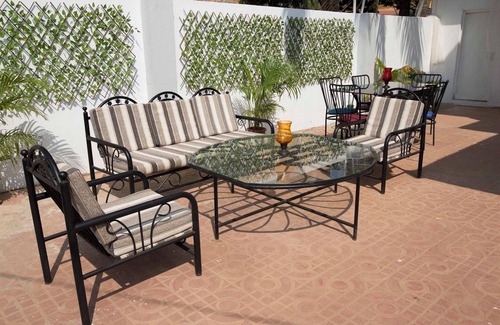 This 8-bedroom villa is perfect for your escape to Morjim. With 8 queen beds, 6 bathrooms, and amenities like swimming pool, AC, WiFi, and a washing machine, guests will feel right at home. The charming and beautiful surroundings make for a wonderful stay. Experience the magic of Morjim at our villa.
