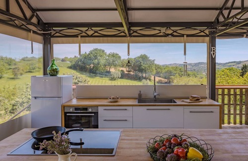 From the pergola you will enjoy a wonderful panoramic view during your evenings. Here you can admire the rows of lavender and the surrounding hills while sipping a glass of wine.