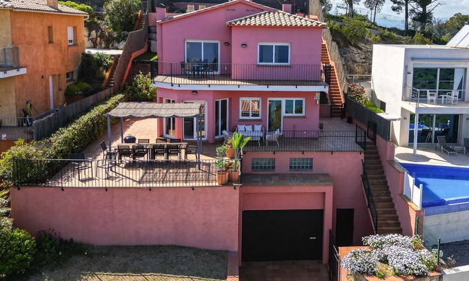 Villa Bella Vista is nestled in the beautiful residential bay of Cala Santa Cristina, offering breathtaking sea views and just moments away from two of the most pristine sandy beaches on the Costa Brava. The secluded beaches are easily accessible either by a 15-minute walk or a short 3-minute drive.This tastefully decorated villa combines comfort with the charm of its surroundings, providing all the amenities for a carefree and enjoyable stay. As the villa's name suggests, the views from the terraces, most of the bedrooms, and the pool area are absolutely spectacular!VILLA LAYOUTOn street level you'll find a private garage offering secure parking for your car. Additional free parking is available on the street in front of the villa.GROUND FLOORJust one flight of stairs up, you'll be greeted by the spacious living area, which includes a fully equipped kitchen, a large separate dining table, and a cozy second sitting area with a Smart TV. Separate toilet with shower.From the living room and kitchen, step outside to the terrace, where you'll find an exterior table under the pergola, BBQ and chill-out corner.FIRST FLOOR:One the first floor you'll find the four bedrooms:- Master bedroom (double bed) with an en-suite bathroom with a bathtub, and a balcony with stunning sea views.- Second double bedroom (double bed) and access to the balcony.- Third double bedroom (two single beds).- The fourth bedroom is perfect for kids, with two sets of bunk beds.- A separate bathroom with a bathtub on this floor as well.COMFORTAll bedrooms have built-in closets and are equipped with air conditioning. The villa is also fitted with central heating for the winter months.POOL AREAOne level up, you’ll find a private pool (7x4 meters) surrounded by sun loungers and a parasol. This area enjoys sunshine all day long, offering the perfect spot to relax while enjoying the panoramic Mediterranean views.BEACHES & ATTRACTIONSThe stunning beaches of Cala Treumal and Cala Santa Cristina are just a short walk (15 minutes) or drive (3 minutes) away. Both beaches offer a range of water activities, sunbeds, showers, lifeguards, and the charming "Cala Treumal" restaurant for a seaside dining experience. Other must-see beaches nearby include Cala Sant Francesc, Cala Sa Boadella, and Cala Canyelles.The town center of Blanes is a mere 5-minute drive away, where you’ll find a marina, a lively promenade, and a wide selection of shops and restaurants. The villa also includes a welcome booklet with our personal recommendations to help you discover the best local hotspots!ADDITIONAL INFORMATION:- Free WiFi.- Air conditioning in all bedrooms.- One set of bath towels per person are provided.- Unfortunately we do not accept groups of youngsters in this villa, the minimum age for guests is 28. Families with children are more than welcome!