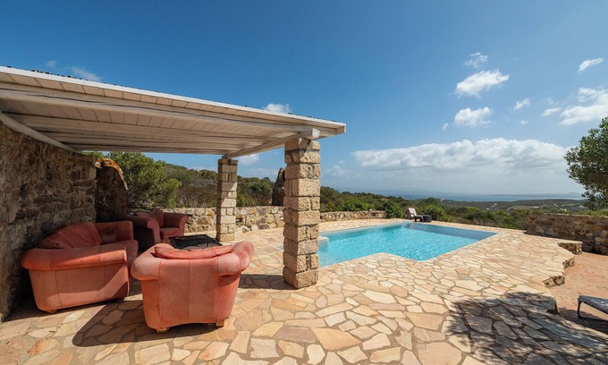 Stunning villa with private pool and garden on the island of San Pietro, immersed in the unspoilt nature of the Mediterranean maquis of south-west Sardinia.