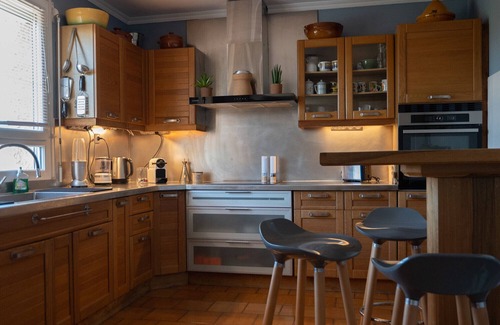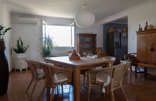 Villa Belle Étang with swimming pool, outdoor kitchen, and a panoramic view of the lagoonThis Mediterranean villa combines comfort, style, and a unique location by a sea lagoon. Villa Belle Étang accommodates up to 10 guests, is fully air-conditioned, and is located just 2.5 km from sandy beaches. Via a private access to the sea path, you can walk directly to a kilometers-long cycling and walking trail. Whether you want to enjoy a relaxed walk with your baby, a sporty running session, or a bike ride to the port of Marseillan, everything is within reach.Villa Belle Étang - Beautiful Outdoor SpacesThe villa features a colorful, well-maintained garden that perfectly matches the Mediterranean atmosphere. The enclosed swimming pool of 12 by 6 meters with a diving board is a real eye-catcher. The pool terrace has been recently renovated and enlarged, providing even more space for relaxation. Here you will find comfortable sun loungers and lounge chairs to enjoy the sun and the view.The renovated summer kitchen with bar, freezer, and refrigerator is ideal for a cozy barbecue or a snack and a drink. The spacious covered terrace offers shade and invites you to enjoy delicious al fresco meals. From the terrace, you can admire the lagoon and passing yachts.Villa Belle Étang - LayoutThe villa is spacious and exudes Mediterranean charm. On the first floor, you'll find the living room and dining room with a glass facade, ensuring you don't miss the breathtaking view. During the day, you can see the yachts on the lagoon, and in the evening, enjoy the lights in the harbor. The kitchen is fully equipped and overlooks the swimming pool, so you won't miss any action outside. The laundry room with a washing machine, dryer, and two additional refrigerators is located on the ground floor.Villa Belle Étang - Bedrooms and BathroomsGround Floor:• 2 bedrooms with double beds (160x190cm) and air conditioning• 1 bedroom with twin beds (2x90x190cm), usable as a double or two single beds, air conditioning• 1 bedroom with two single beds (2x90x190cm) and air conditioning• 1 bathroom with sink, bath, shower, and toilet• 1 bathroom with sink, shower, and toiletFirst Floor:• 1 bedroom with double bed (160/200cm) and air conditioning• 1 bathroom with sink and shower• Separate WCVilla Belle Étang - Comfort and Extra ServicesThe villa is fully equipped for a carefree stay. Final cleaning is included, as well as the use of linen (sheets, towels, and kitchen towels). Beach towels can be rented optionally.Upon request, we can arrange an experienced chef at an additional cost to prepare delicious meals or a babysitter for extra convenience. Dogs are welcome by arrangement.Villa Belle Étang - SurroundingsVilla Belle Étang is located just 1 km from the charming village of Marseillan. The port of Marseillan, surrounded by atmospheric terraces and restaurants, is a delightful place to spend time. Here you'll also find a sailing school and the lively weekly market. For a day trip, the trendy Sète and the vibrant Cap d'Agde are both recommended. The hinterland offers a beautiful backdrop of vineyards and charming villages, ideal for a wine tour or outdoor activities.In short, whether you want to relax by the pool, enjoy a walk along the lagoon, or explore the surroundings, Villa Belle Étang offers everything for an unforgettable Mediterranean holiday.