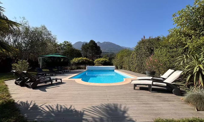 Villa "BELLE-VUE" breathtaking view and private pool is located in Saint-Pierre-en-Faucigny. Villa "BELLE-VUE" breathtaking view and private pool provides accommodation, featuring TV, Wellness Facilities, Entertainment, among other amenities. This Villa features TV, Wellness Facilities, Entertainment, to make your stay a comfortable one.