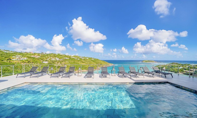 Experience the enchantment of Villa Bellevue I Marigot, a stunning vacation rental located in the heart of St-Barths. This luxurious villa offers an ideal backdrop for weddings with its breathtaking panorama over the bay and lush neighboring hills. Nestled in a serene tropical environment, Villa Bellevue seamlessly combines elegant comfort with refined décor, making it the perfect setting to celebrate your special day surrounded by family and friends.