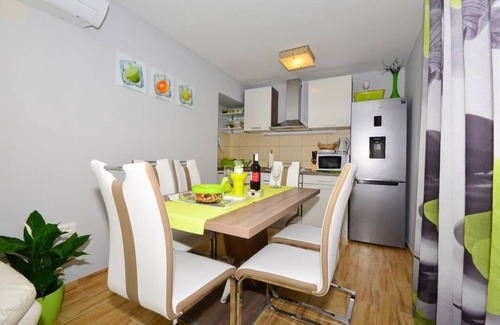 It features free Wi-Fi, air condion and flat screen Cable TV. Open plan kitchen is filla equipped and comes with dining area and it is conected with living room. Two private bathrooms come with showers, washing machine and hair dryer.