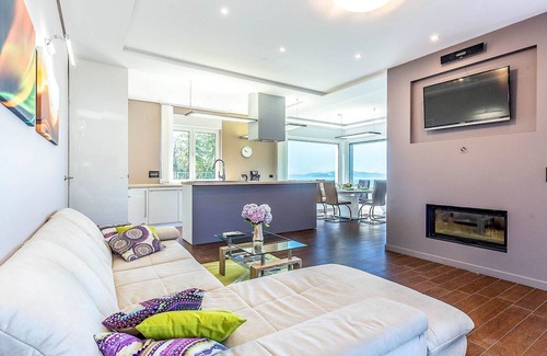 The fabulous Villa Benke is designed as three superb apartments over two floors. With four bedrooms in total, sleeping eight guests, one apartment has a sofa bed so you could actually squeeze another two guests in if required. The villa would suit an extended family wanting a little space of their own or a group of friends. It is so contemporary making fantastic use of glass. The villa is situated on an extraordinary raised plot in Matulji, overlooking the wonderful coastline.