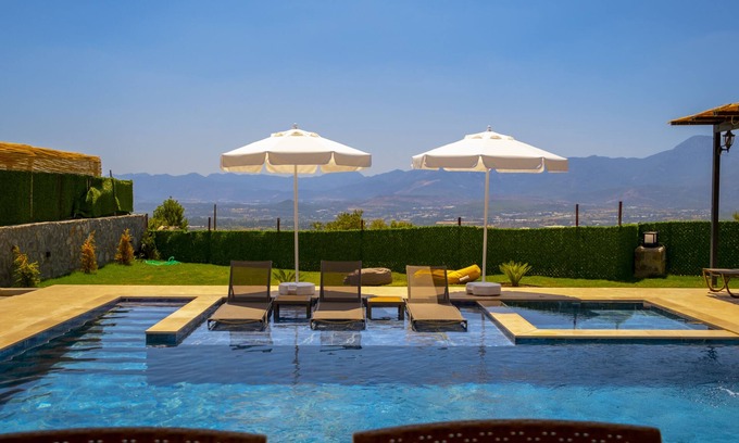 Villa Berra for rent, located in the Seydikemer district of Muğla, 4 km from Yakapark and 2 km from the Ancient City of Tlos, has an accommodation capacity of 6 people with its own pool, garden and 3 bedrooms. Our villa has a sauna, a children's pool and an open-air jacuzzi. Our villa, which is designed in such a way that the garden and pool terrace are not visible from the outside, is also suitable for families who prefer conservative holidays.