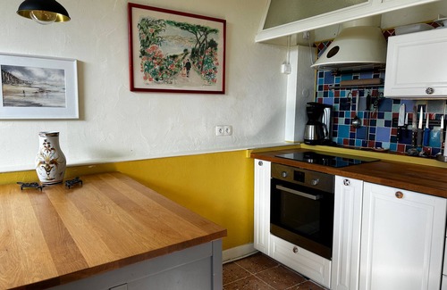 One quiet and comfortable bedroom with sea views and quality linens. A light-filled living area with traditional details and a vintage dining table. A dedicated workspace with standing desk and sea view -- ideal for working remotely. A fully equipped chef’s kitchen with induction cooktop. High-speed WiFi, heating, and all essentials provided. The home combines Norman heritage with simple, functional design -- perfect for travelers seeking a quiet base to enjoy the beach, walks along the cliffs, or a slower rhythm of village life. Everything in Veules-les-Roses is walkable: the beach, the weekly market, bakery, cafés, and the smallest river in France are all just minutes away.