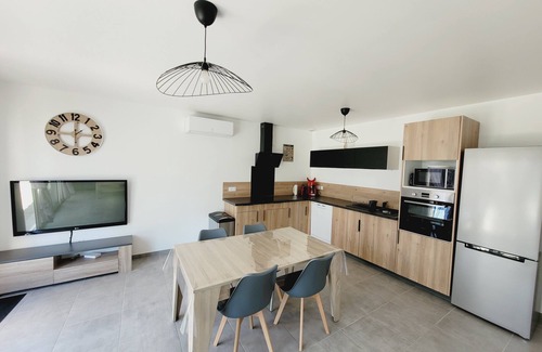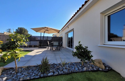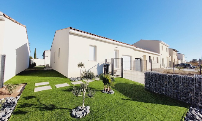 Welcome to this charming new villa ideally located between Narbonne and Béziers, less than 20 minutes from the beaches of Valras-Plage and Cabanes de Fleury. Nestled in a recent and peaceful area of the village, this property offers an ideal setting for a holiday with family or friends.