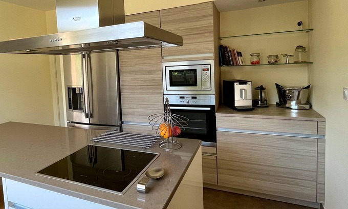 Relax by the outdoor pool or sip a drink in the garden of this 1722-sq-ft villa, which also features a deck or patio and outdoor furniture. As for the great indoors, you can try your hand at table tennis, or enjoy the free WiFi, TV, and video games.