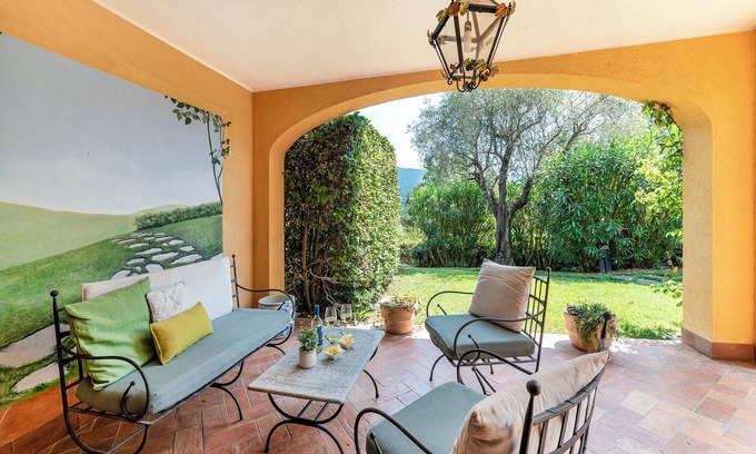 Close to sailing, windsurfing, and more, this pet-friendly vacation home brings it all within reach. Thanks to the convenient onsite parking, you can either leave your vehicle behind and let your feet make short work of the 6-minute walk to Golf Club Garlenda, or easily tackle the 10-minute drive to Budello di Alassio.