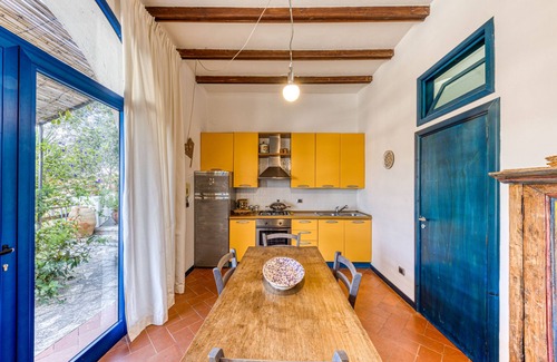 This apartment is part of a single building, a large villa with swimming pool (open all year round) built on three terraced levels, and each level is occupied by an apartment. Villa Blue "La Cambusa" consists of matrimoial room, open living-kitchen with two single sofas, with a terrace and its own garden.