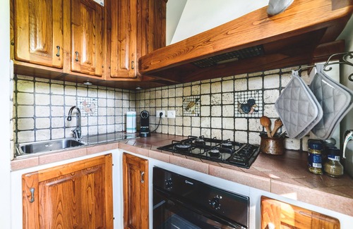 The stone villa is located on a wooded hill (at a height of approx. 1500ft / 500m). There is easy access to an asphalted road accessed via an electric gate. Surrounded by Mediterranean oak trees in the terraced garden, the villa is ideal for people who love privacy and tranquility. The setting is rustic.