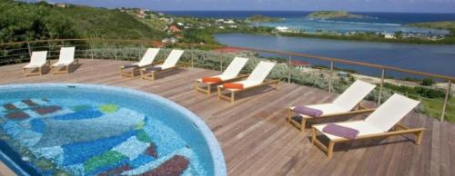 Offering a garden and barbecue facilities, Villa BOT- EVERSAIL avec vue panoramique sur l'océan in Saint Barthelemy is close to Grand Cul de Sac Beach and Petit Cul De Sac Beach. This property offers access to a terrace, free private parking, and free Wifi. Mountain views are a highlight at the villa's pool. The air-conditioned villa consists of 3 bedrooms, a living room, a fully equipped kitchen with a dishwasher and a coffee machine, and 4 bathrooms with a walk-in shower and a hair dryer. Guests can enjoy a meal on an outdoor dining area while overlooking the sea views. For added privacy, the accommodation features a private entrance. Lorient Beach is 1.8 miles from Villa BOT- EVERSAIL avec vue panoramique sur l'océan. Gustaf III Airport is 3.1 miles from the property.