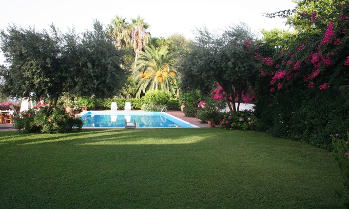 Villa Braghò in Tropea is unique unto itself since it is set in 3.8 hectares of a splendid mature Mediterranean garden whist still being a part of the town centre. One side of the garden is bounded by an orange grove which envelops the whole in fragrance in the spring. The villa has a private swimming pool behind a lemon tree hedge. A number of mature bougainvilleas add their beauty to the garden as do a large Peruvian pepper tree and four immense Italian stone pines also called parasol pines.