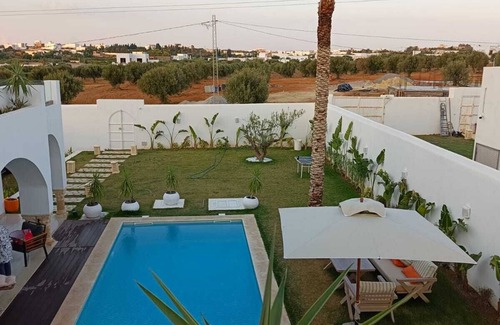 Located in Hammamet, this 3-bedroom, 4.5-bathroom villa lets you experience it all. Fans of nature and the outdoors will love being 7 minutes by car from Hammamet Beach and 14 minutes from Yasmine Beach. You'll easily make the quick 5-minute drive to Carthage Land or the 5-minute drive to Dar Sebastien International Cultural Center.