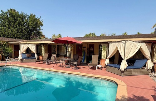 Villa C - a studio with kitchen A few steps from downtown Palm Springs! 👑 has 1 Bedroom , 1 Bathroom, and max occupancy of 2 people. The minimum rental for this property is 1 nights, but this can change depending on the season you plan on staying. Previous guests have given good rated it, and VRBO labeled it a top-rated Apartment because of the excellent services rendered by the owner or manager of this Apartment, and has consistently provided great experiences for their guests. Most families or guests that use it recommend it to their friends and some of them are repeat guests. Apartment has a friendly neighborhood, and the Historic Tennis Club has interesting places to visit. If you want to learn more about the Apartment in Historic Tennis Club, such as places to visit and things to do nearby, you can check below to learn more.