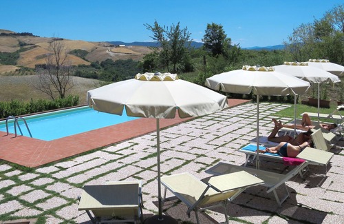 Residence "Villa Caggio". 2 houses in the residence. 5 apartments in the residence. 3 km from the centre of Volterra, on the outskirts, 30 km from the centre of San Gimignano, 45 km from the sea. For shared use: property 1'000 m2 (fenced), trees, meadow, swimming pool (4 x 9 m, seasonal availability: 21.May. - 02.Oct.). Outdoor shower, pool maintenance by the owner/gardener. In the complex: WiFi, bicycle rental. Parking on the premises. Shop 2 km, supermarket 3 km, bus stop 1 km, sandy beach "Marina di Cecina" 45 km, indoor swimming pool 4 km. Nearby attractions: Pisa 70 km, Lucca 75 km, Siena 50 km, Firenze 80 km. Hiking paths: Parco Berignone 12 km. Please note: the owner lives on the same property. E-bike and car rental from the owner. (extra).