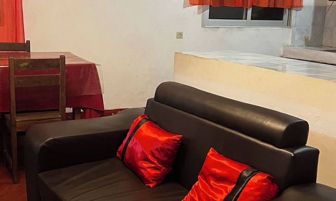 Large ground floor apartment with one bedrooms, living room, kitchen, and full bathroom. Very clean, simple, comfortable and in a private gated location in the bustling city of Sambava. Cleaning services can be provided (at extra cost).