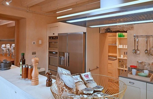 You will be able to enter the kitchen from the dining room. It is equipped with a six-burner induction cooker, an electric oven, an American-style refrigerator with ice-maker, a dishwasher, a microwave oven, an American-style coffee-maker (bring your filters!) and a kettle. From the kitchen a French door will take you to the patio. The kitchen is equipped with an air conditioning/heating unit.