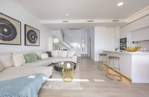 Overlooking the mountain, the villa Campana Garden 52 in Finestrat impresses guests with its fantastic views. The 2-storey property consists of a living room, a well-equipped kitchen, 3 bedrooms and 3 bathrooms and can therefore accommodate 6 people. Additional amenities include high-speed Wi-Fi (suitable for video calls), air conditioning, a washing machine as well as a dryer.