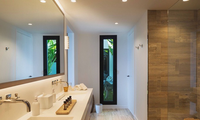 The villa also has a fitness room and a cozy, air-conditioned entertainment room. For those who prefer to explore St. Barth, the house is also a good base, with a location near the Christopher Hotel and convenient access to both sides of the island.