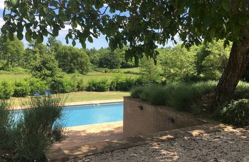 The swimming pool is located on a lower terrace with respect to the villa which is about 20 metres away. It is reached down eleven steps in terracotta from the pergola and from the open-plan living area, or across the lawn from the parking area at the end of the drive. Measuring 4 x 10 m with a constant depth of 1.40 m, it is lined in resin and has chlorine purification, internal lighting and a metal ladder for access to the water. The solarium, in porous terracotta and lawn, is equipped with sunbeds and umbrellas. There is a solar shower. The pool is open from the last Saturday in April to the first Saturday in October.