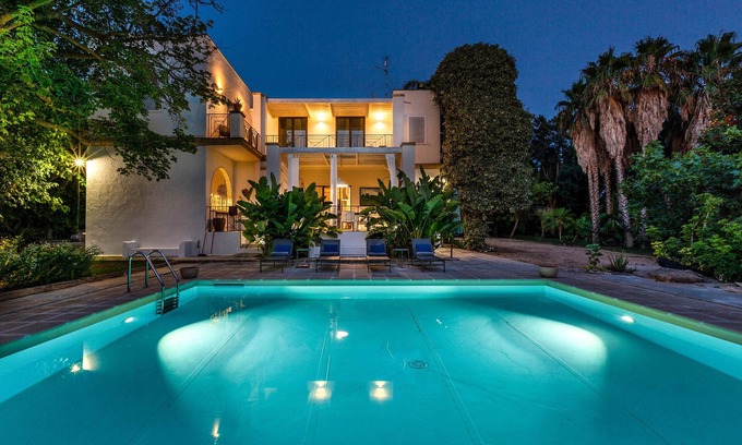 It`s in the quiet and beautiful countryside of the Salento inland, a short drive away from lively Gallipoli and its famous beaches, Villa Casablanca Charming House is a highly-accessorized extraluxury villa with pool and wifi connection, ideal for a memorable and luxury vacation in Apulia, in Salento. This is a refurbished historic villa, furnished with modern and design elements. With its 5 suites, it can accommodate up to 10 guests.
