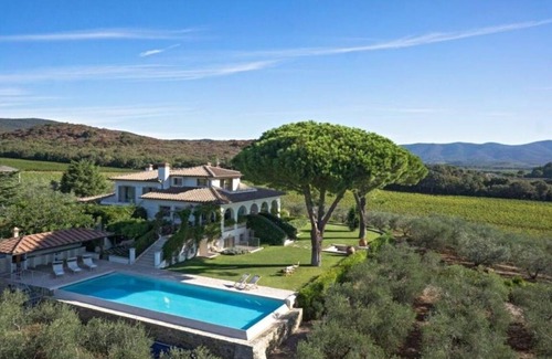 Experience the enchanting elegance of Villa Castiglione 10 amazing villa with p/pool and sea view, a stunning property nestled amidst the tranquil Maremma hills. This modern villa provides an idyllic setting for your dream wedding, offering breathtaking views of the turquoise sea and the lush surrounding landscape. Imagine exchanging vows in this picturesque location where luxury meets nature, creating unforgettable memories that will last a lifetime.