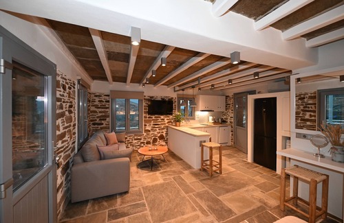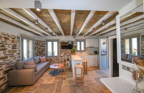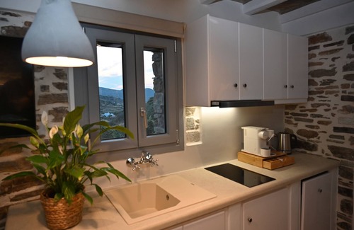 Villa Celini House 2 in Tinos provides 50 sqm of space accommodating up to 3 guests with 1 bedroom and 1 bathroom. You have a private fully-equipped kitchen available. The villa features mountain view, WiFi suitable for video calls, air conditioning, TV, whirlpool usable year-round, beach towels, balcony, and washer. This new stone-built property offers open plan design with modern kitchen, living room, and bedroom. Located in a 3-acre farmhouse setting, you have private entrance and separate parking with car access. The property is situated near natural trails for walks close to Krokos village and beaches of Kolymbithra Komi and Loutra.