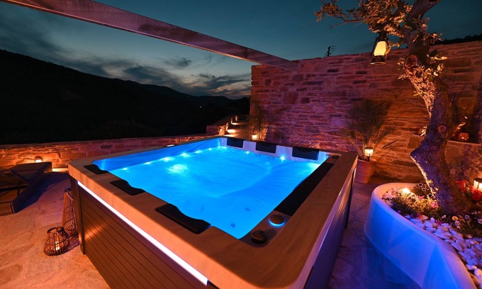 Best-rates for the Exomvourgo villa starts from $153 per night with includes Designated Smoking Area, View, Bedding/Linens, Internet, Kitchen, Air Conditioner, Ocean View, Balcony/Terrace, Oceanfront, Wellness Facilities, TV, Hot Tub, Parking, Fireplace/Heating, Child Friendly, Laundry with all other amenities. Perfect for Weddings is committed to ensuring every guest experiences a comfortable and extraordinary stay, whether planning a romantic getaway, a honeymoon, a pet-friendly stay, or celebrating with the entire wedding party.