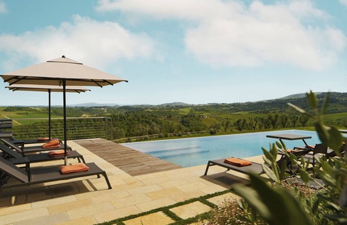 A contemporary villa in the heart of Tuscany, with stunning views over the iconic towers of San Gimignano.