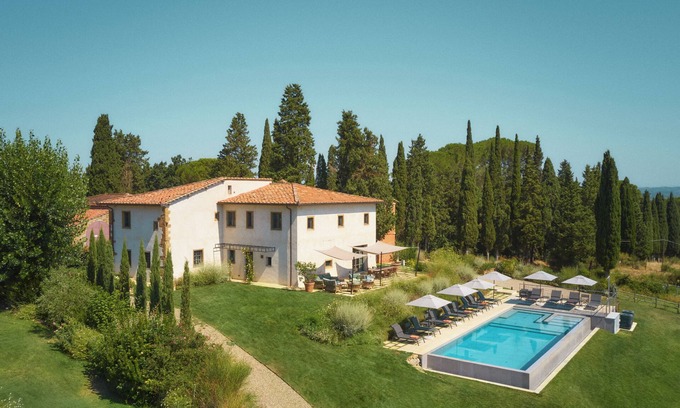 Best-rates for the San Gimignano villa starts from $2,321 per night with includes View, Ocean View, Guest Services, Child Friendly, Air Conditioner, Pool, Accessibility, Breakfast, Barbecue/Outdoor Cooking, Laundry, Parking, TV, Security/Safety, Sports/Activities, Bedding/Linens, Wellness Facilities, Spa, Private Pool, Balcony/Terrace, Fireplace/Heating, Hot Tub, Internet, Kitchen, Pet Friendly with all other amenities. Perfect for Weddings is committed to ensuring every guest experiences a comfortable and extraordinary stay, whether planning a romantic getaway, a honeymoon, a pet-friendly stay, or celebrating with the entire wedding party.