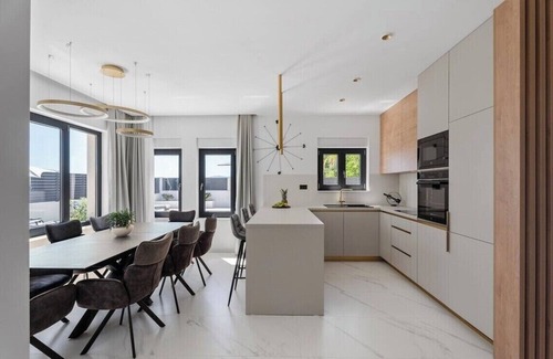 From the villa's terrace, you can enjoy a stunning view of the Kaštela Bay, especially magical at sunset. The villa’s location is perfect for guests who want to stay close to all amenities – within walking distance, you’ll find a variety of restaurants, cafés, shops, and shopping centers.