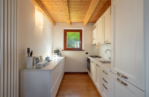 Rarely to find a gem like this: Charming Villa Chalet offers stunning lake views from about Desenzano (south) to Limone (north) , an own private heated pool , private garage, BBQ, and a completely fenced private garden for exclusive use! New in 2025: an elegant sunshade (remote control) in front of the sleeping rooms adds cozy living atmosphere. The outstanding interiors and equipment make this villa to become your favorite ! With 3 bedrooms (sleep for 6) plus a sleeping sofa in the open gallery abve the living area this villa is equipped with all comfort from towels to bed bags, 2 cushions per person, memory foam matresses. Two fully equipped bathrooms in front of the sleeping rooms and an extra guest toilet on the level of the living area. The tub will be substituted by an large walk-in shower end of 2025. Kitchen: American coffee machine plus Nespresso machine, big fridge and freezer, warer kettle, microwave, oven. Special attention to amenities based on natural products and/or recycable. The own private garage with remote control offers security for your car or bikes. Bike rental with delivery/pick-up at the villa (external service company to be booked ahead seperately) Or want to rent a scooter ? We help in any case and for any kind of request ! Sightseeing or eno-gastronomic tours ( wine tasting) can be arranged as well as an opera evening in the ARENA di Verona. Taxi service if needed. Tecnologically this villa is at the TOP: 55" smart-TV in the living room and a 32" fat screen in the central sleeping room. A/C (centralised on the groundfloor, will be extended to all sleeping rooms in 2026), alarm system, safe, WIFI, printer with scan function for those who need to stay in contact with the office. Beneath the Mountain Baldo this villa which is embedded in a small residence (Relais San Zeno) in San Zeno di Montagna is situated on the "balcony over Lake Garda" and offers stunning views and sunsets. High level restaurants, some reachable also by a short walk, tradtional food and excellent delis. Hotspots of Garda Lake can be reached by a short drive. Short term stays as well as flexible arrival/departure days possible.
