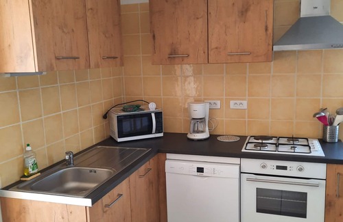 Fully equipped kitchen (oven, microwave, 4 gas burners, extractor hood, dishwasher, fridge-freezer ...) and dining room. Living room with sofa and flat screen TV. Shower room, separate toilet