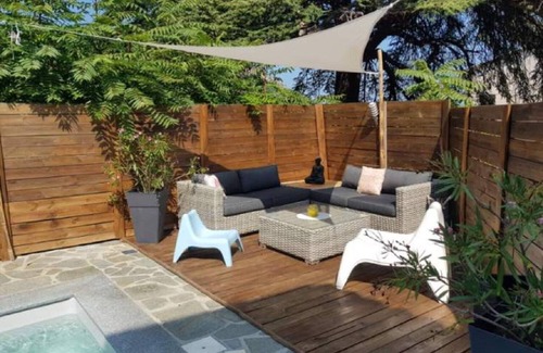 - HEATED POOL 5x3 ON A STONE TERRACE OF 130M2, DINING TABLE, SUNBATHS, GARDEN.