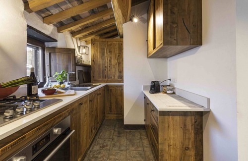 On the ground floor, guests are welcomed by a fully equipped kitchenette, perfect for those who enjoy cooking even on holiday. The sleeping area includes: a refined Junior Suite with a king-size bed, reading nook, dormeuse, and private bathroom with shower; a comfortable double bedroom with its own private bathroom (with shower).