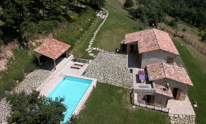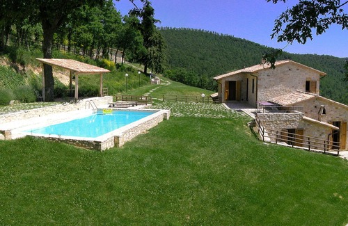 Views from the swimming pool are of the classic countryside, hillsides, forest and the ancient village of Collelungo, providing twinkling lights at night.